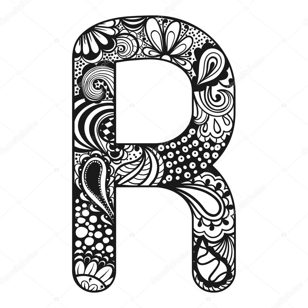 R Letter Colouring Alphabet Zentangle Kids Doodle Zen Adult Etsy