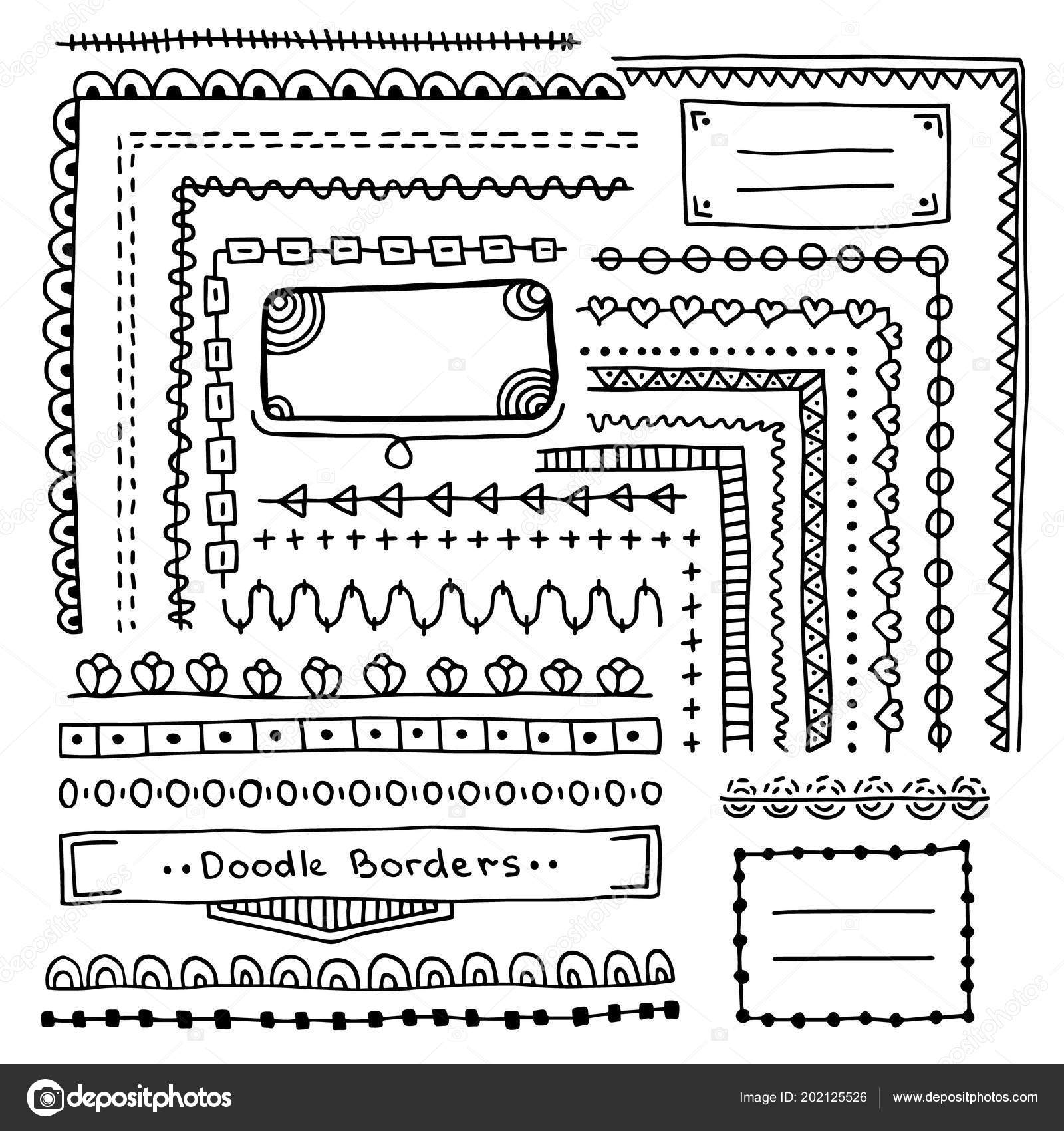 Set Hand Drawn Border Doodle Design Elements Isolated White Background Stock Vector C Ladzha 202125526