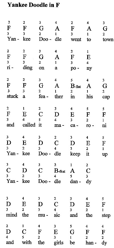 Full version yankee doodle went to town a riding on a pony stuck a feather in his cap and called it macaroni. It is often sung patriotically in the united states today and is the state anthem of connecticut. Indeed with the hands playing together in this tune the fingering issues are a bit more difficult.