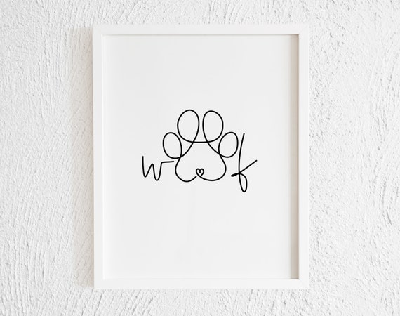 Minimalist Dog Woof Paw Drawing Doodle Wall Art Print Etsy