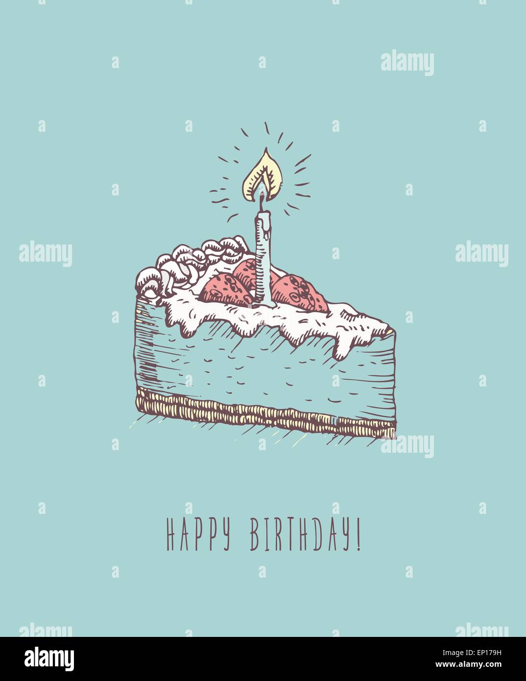 Birthday Greeting Card With Cake In Doodle Design Hand Drawn Vector Stock Vector Image Art Alamy