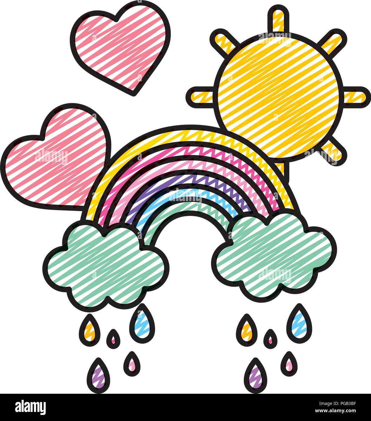 Doodle Rainbow Clouds Raining With Hearts And Sun Stock Vector Image Art Alamy