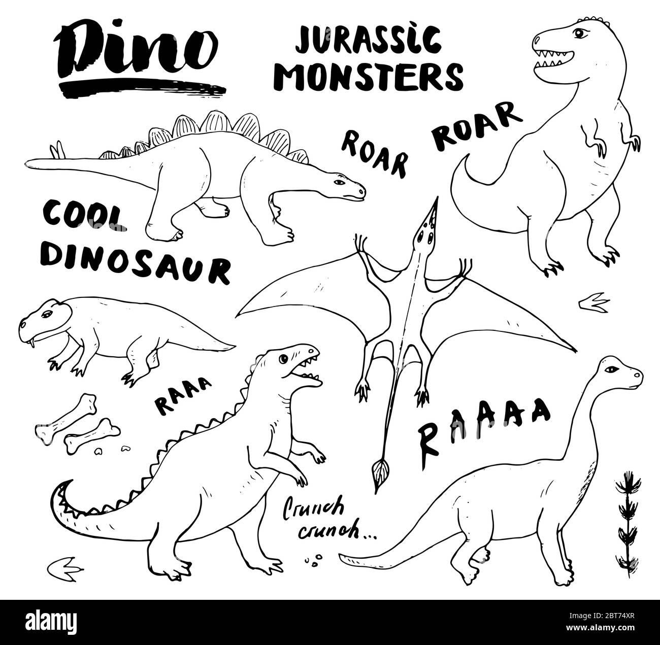 Dino Doodles Set Cute Dinosaurs Sketch And Letterings Collection Hand Drawn Cartoon Dino Vector Illustration Stock Vector Image Art Alamy