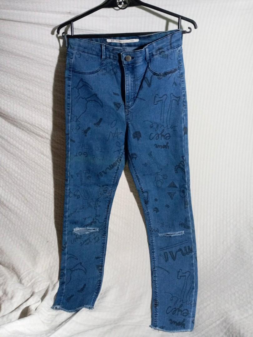 Zara Ripped Jeans With Doodle Design Women S Fashion Clothes Pants Jeans Shorts On Carousell