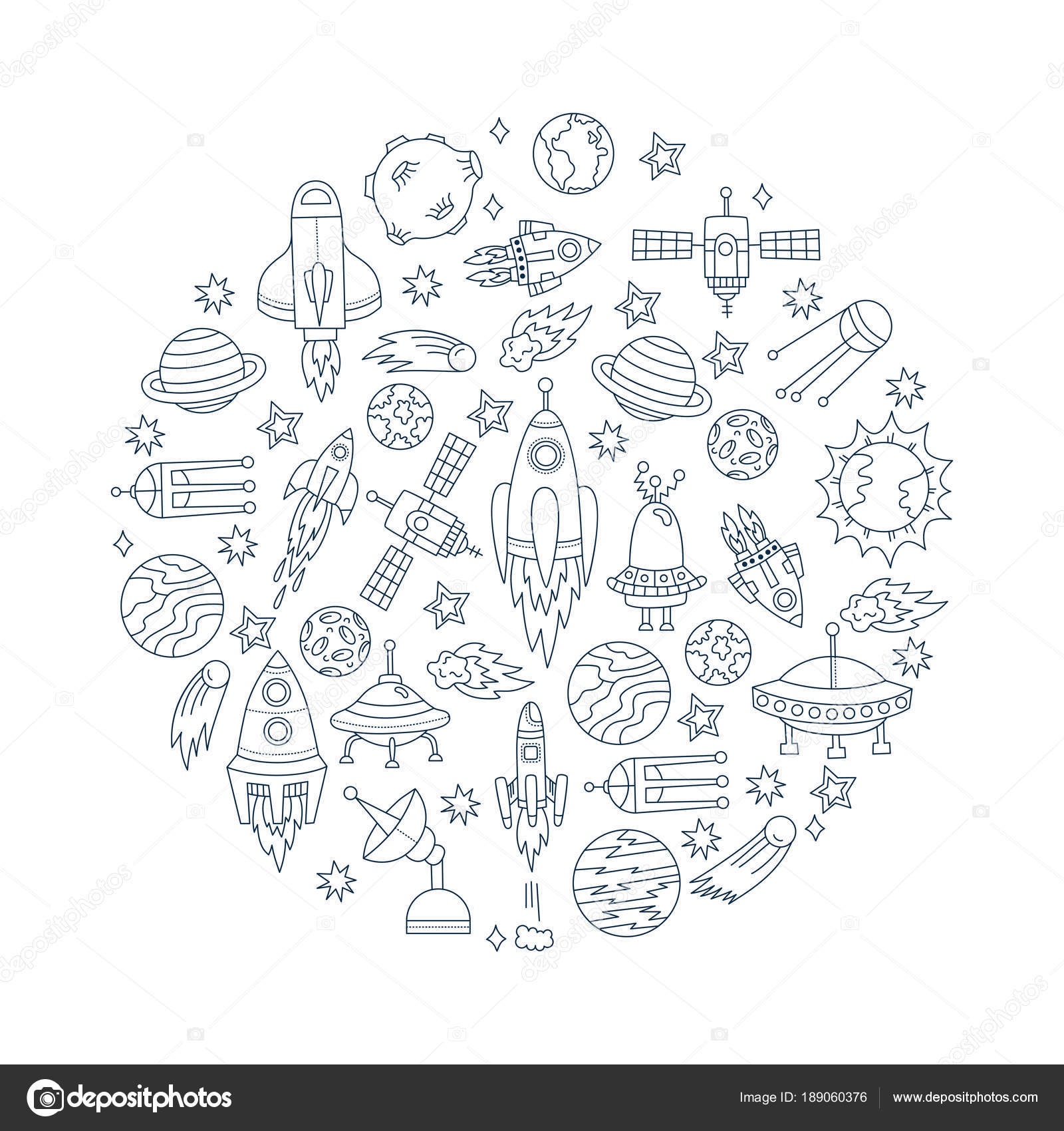 A Set Of Hand Drawn Unfilled Line Drawings Of Space Ships Planets Space Doodles Autumn Doodles Space Drawings