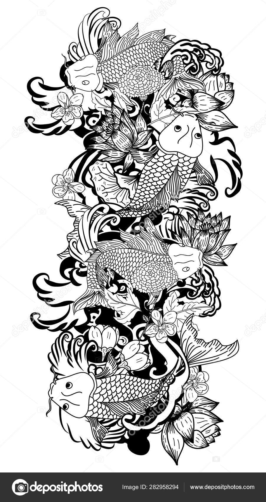 Beautiful Doodle Art Koi Carp Tattoo Design Stock Vector C Umami1431 Gmail Com 282958294