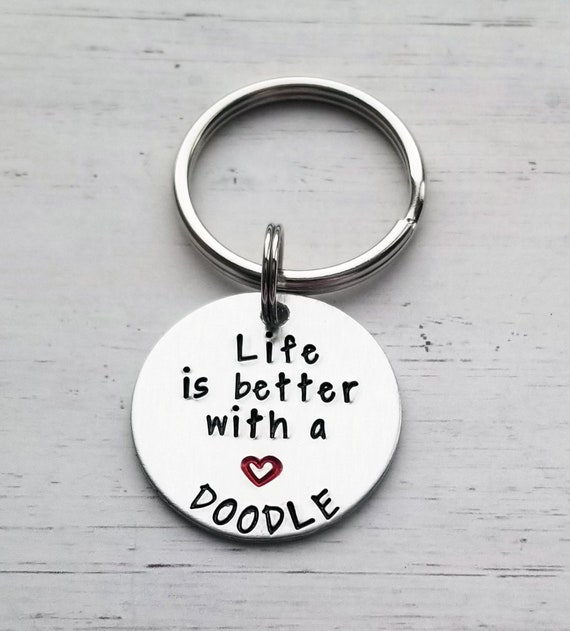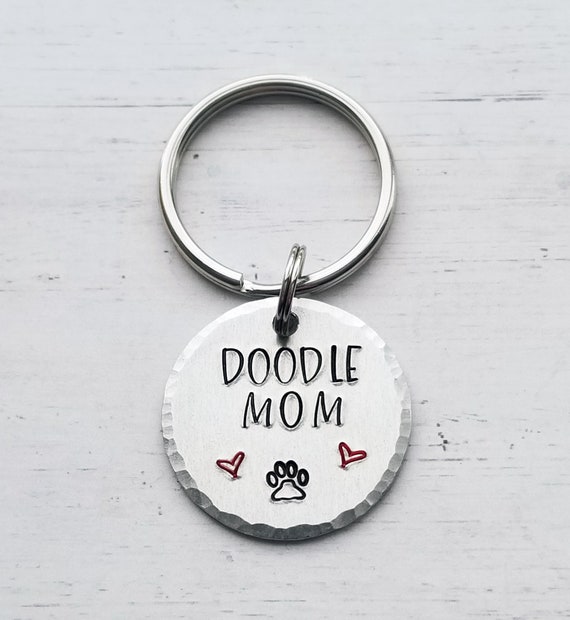 Futop doodle mom doodle dad keychain set hand stamped keychain goldendoodle gift for pet lover doodle keychain 5 0 out of 5 stars 15. Only 3 available and it s in 8 people s carts. Doodle key chain goldendoodle key chain personalized dog key chain labradoodle mom doodle dad graydoggoods.