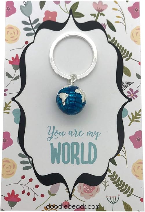 Amazon Com Doodle Beads World Globe Keychain You Are My World World Globe Charm Purse Charm Globe Key Ring Zipper Pull Accessory Jewelry