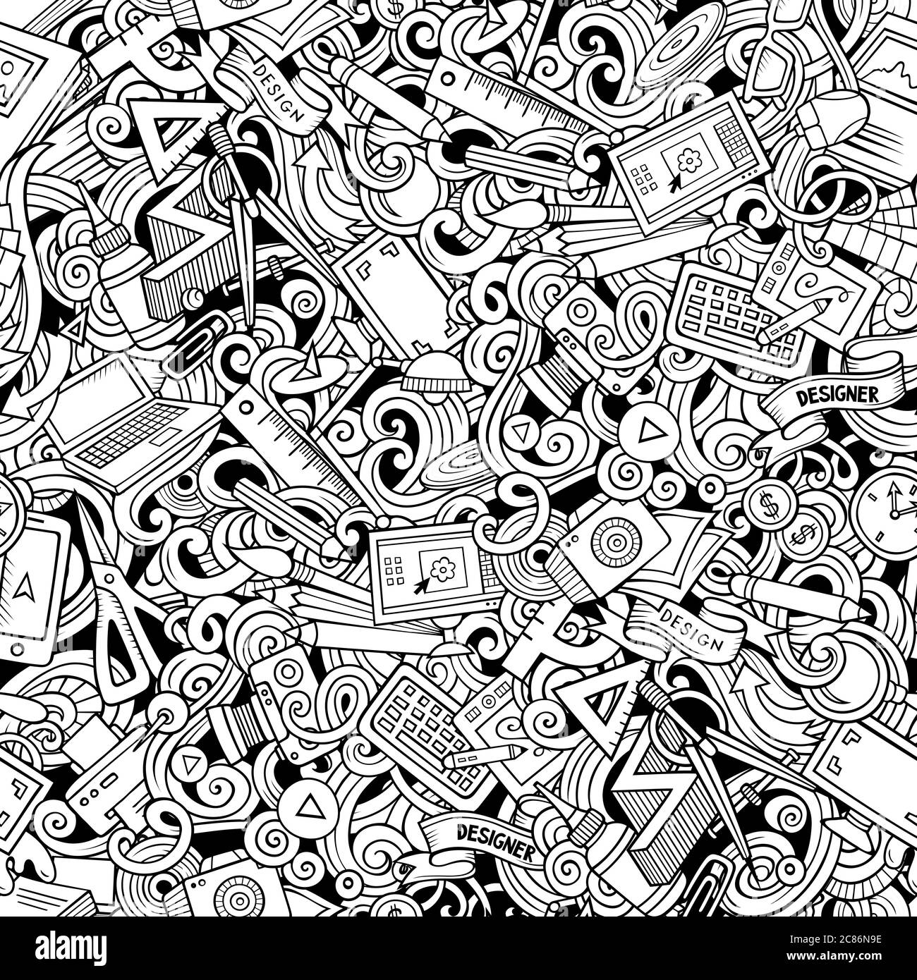 Cartoon Cute Doodles Hand Drawn Designer Seamless Pattern Stock Vector Image Art Alamy