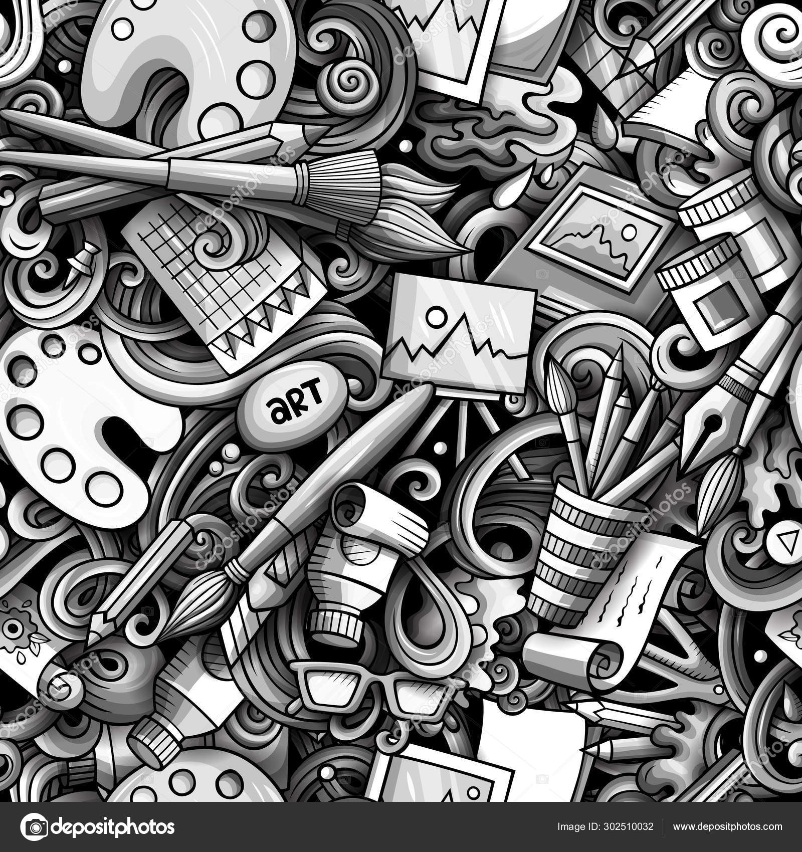 Cartoon Cute Doodles Hand Drawn Artist Seamless Pattern Stock Photo C 3dsparrow 302510032