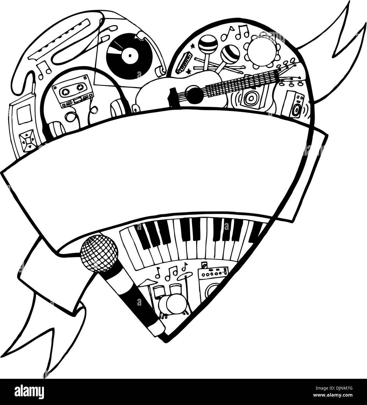 Music Doodles In Heart Shape With Banner Stock Vector Image Art Alamy