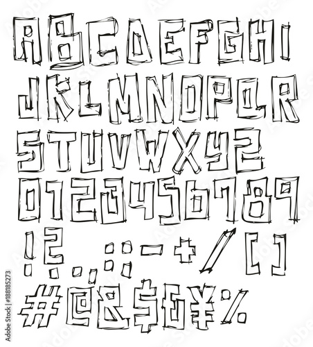 Thin Pen Doodle Block Bold Vector Font With Uppercase Letters Numbers Signs Stock Vector Illustration Of Silhouette Retro 107723148