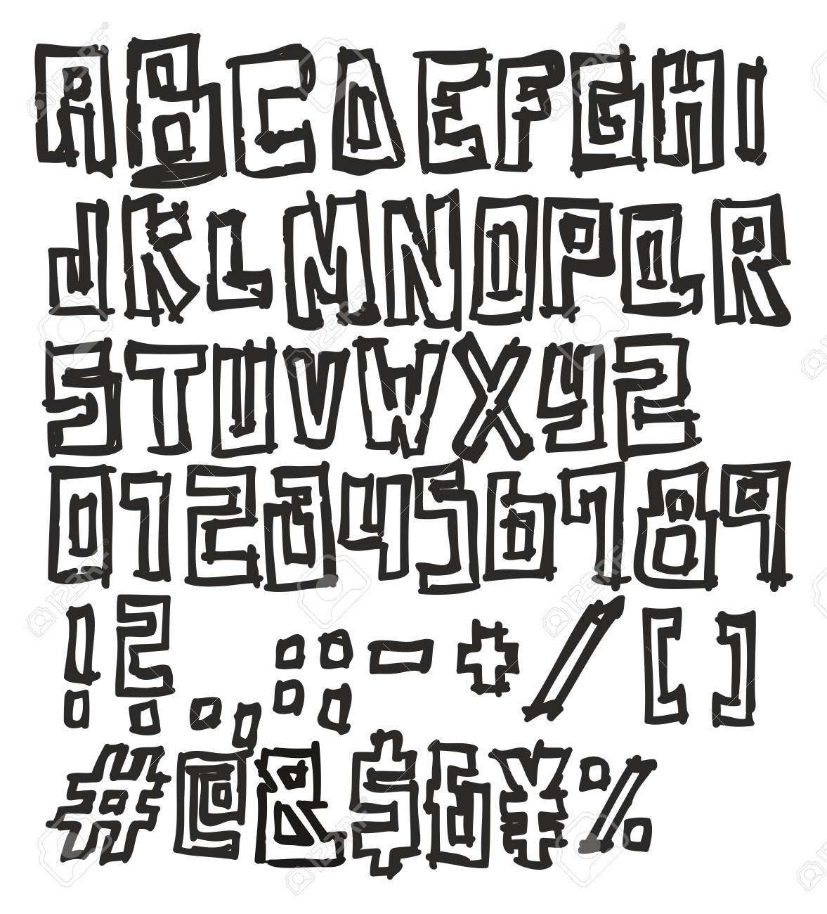 Thin Pen Doodle Block Bold Vector Font With Uppercase Letters Royalty Free Cliparts Vectors And Stock Illustration Image 93867342