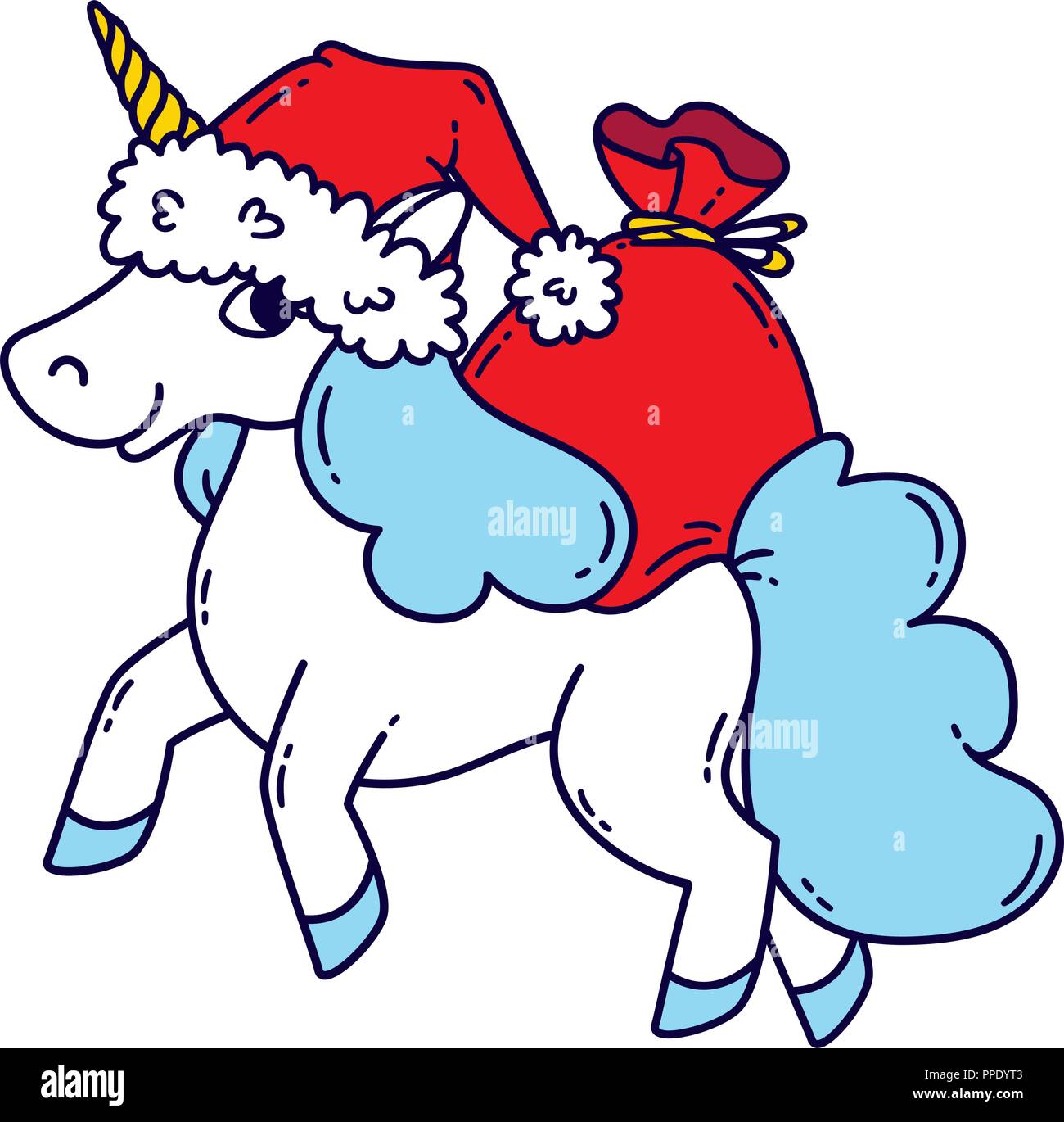 Christmas Unicorn With A Santa Hat And A Bag Of Gifts Cute Doodle Art Of Magic Creature Vector Illustration Isolated On White Background For Print Stock Vector Image Art Alamy