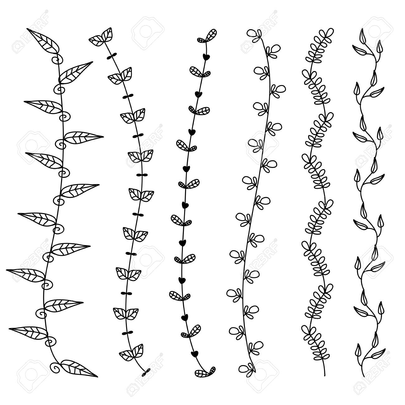Flower Vine Leaves Hand Drawn Doodle Vector Line Border Set And Royalty Free Cliparts Vectors And Stock Illustration Image 144406580