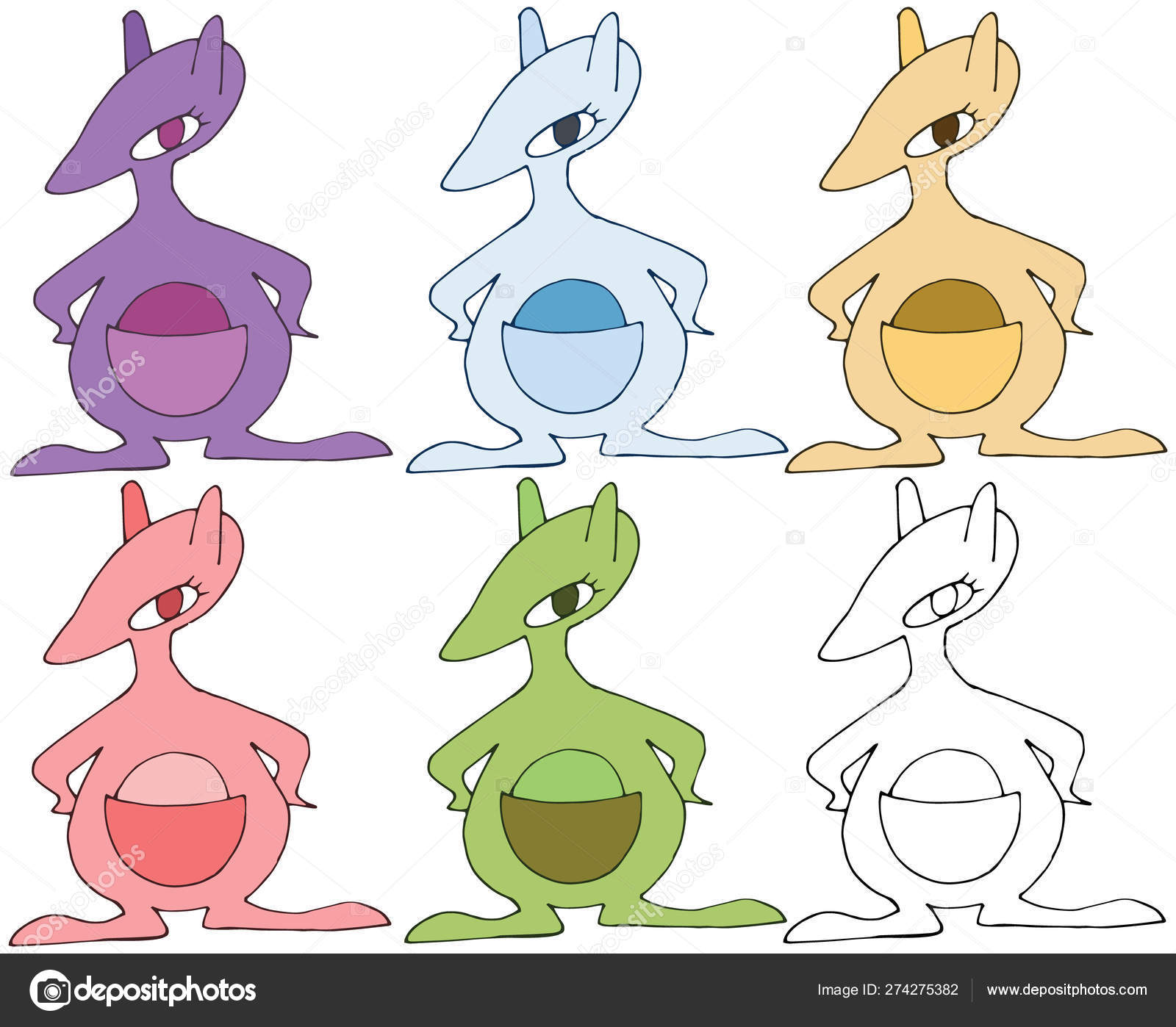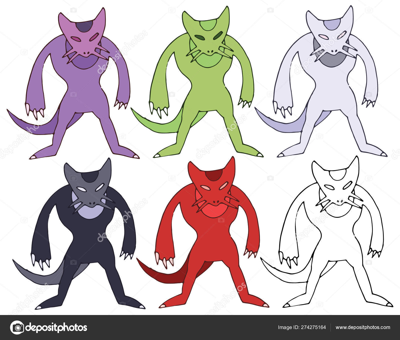 Cartoon Doodle Monster Color Set Hand Draw Happy Funny Kid Stock Vector C Deazushka 274275382
