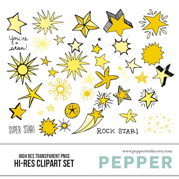 Stars Doodle Clipart Set Hi Res Yellow Stars Doodle Etsy