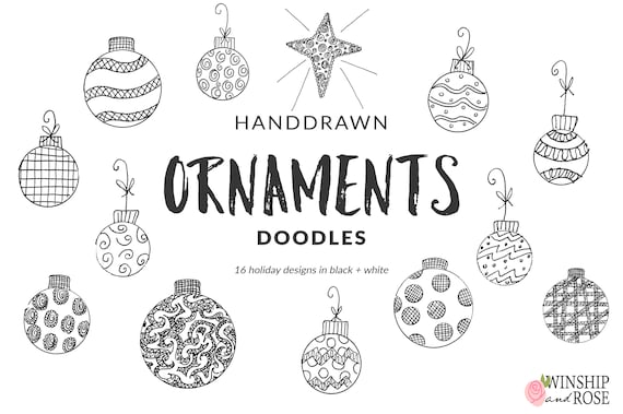 Holiday Ornaments Clip Art Hand Drawn Christmas Doodle Etsy