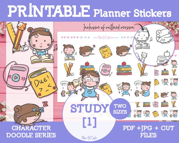 Study Character Doodle Printable Stickers Instant Download Etsy