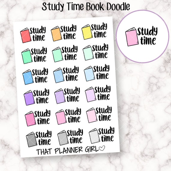 Study Time Book Doodle Cute Stickers To Mark Study Time Etsy