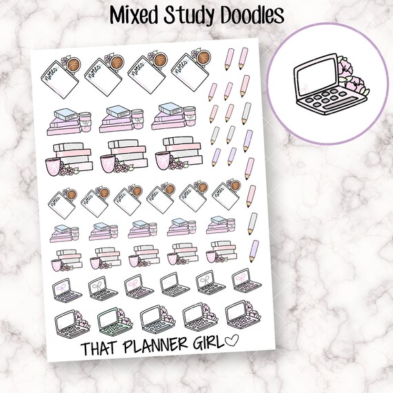Mixed Study Doodles Pretty Floral Stickers Mark Study Etsy