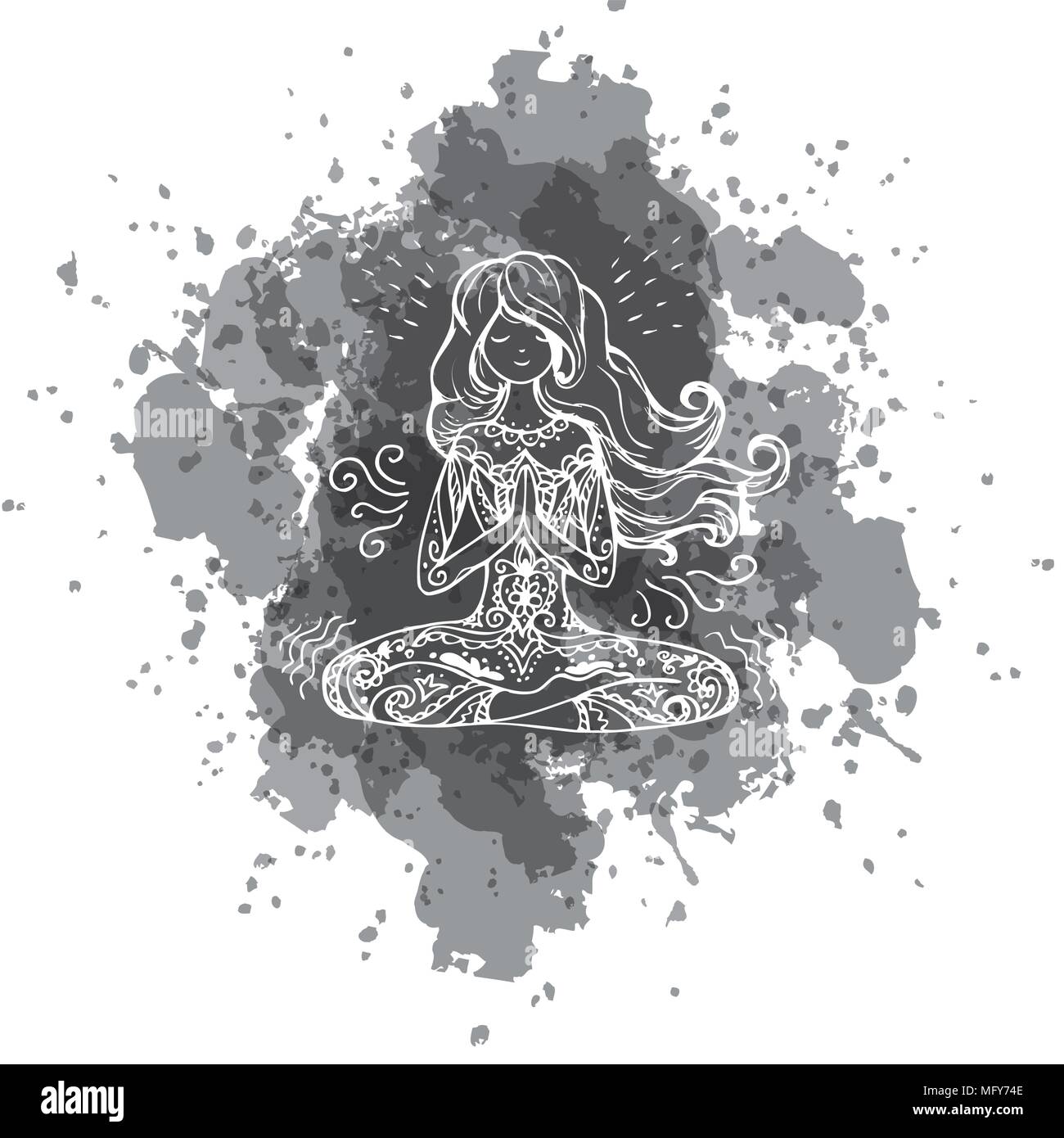 Girl Doing Yoga Lotus Pose Vector Illustration Of Doodle Hand Drawn Royalty Free Cliparts Vectors And Stock Illustration Image 97882787