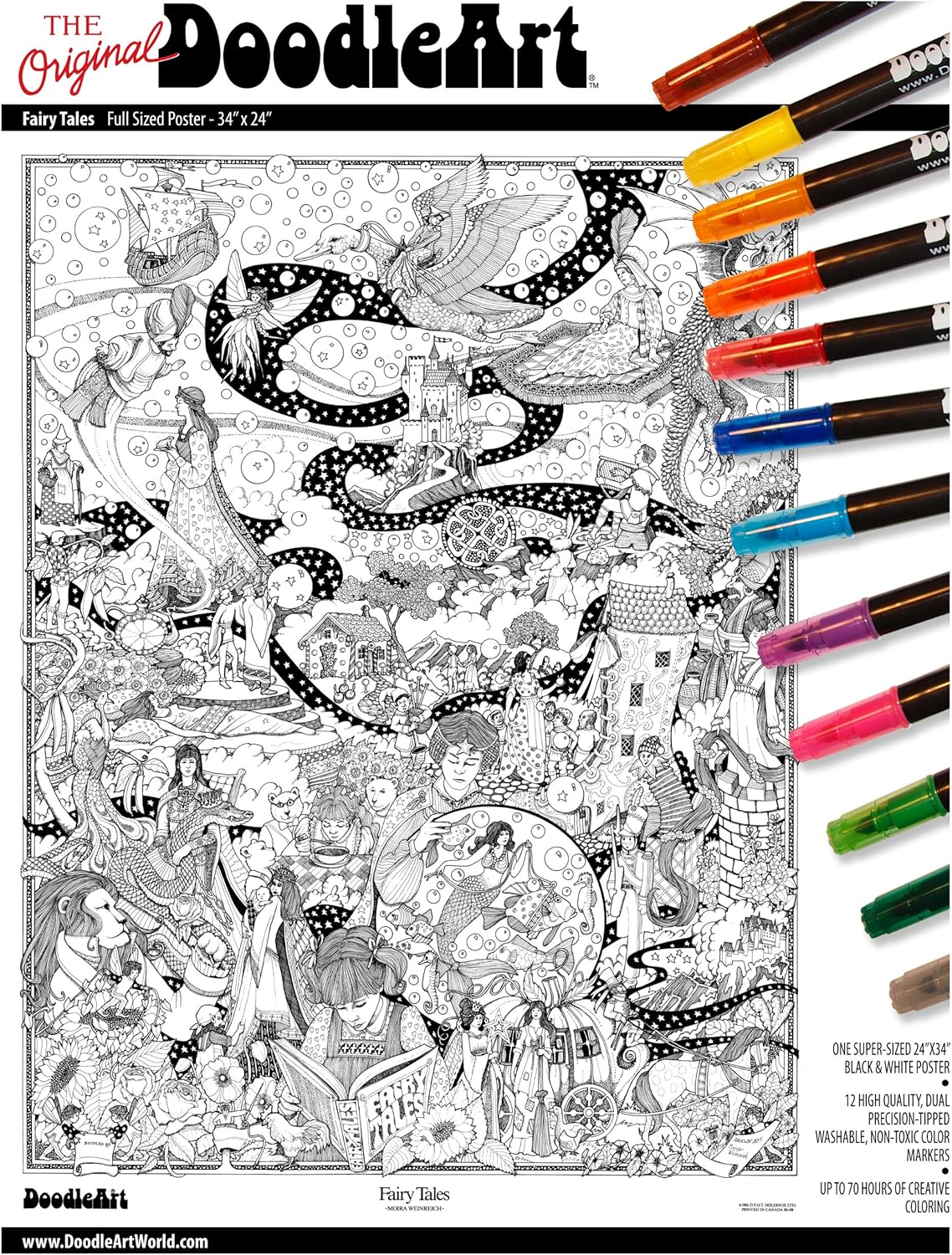Doodleart The Original Fairy Tales Adult Coloring Poster Amazon Co Uk Toys Games