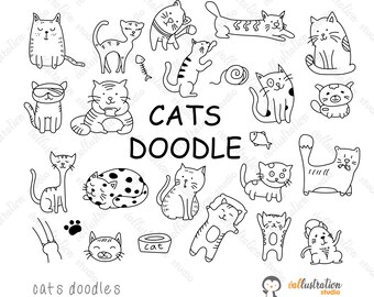 Doodle cats hand drawn outline clipart cats characters png eps ai cats clipart vector clip art craft supplies coloring digital stamps sale price 4 16 4 16 5 20 original price 5 20 20 off.