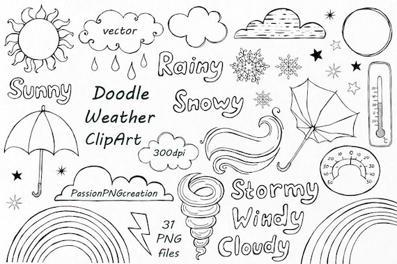 Doodle Weather Clipart Png Vector Eps Ai Hand Drawn Clip Etsy
