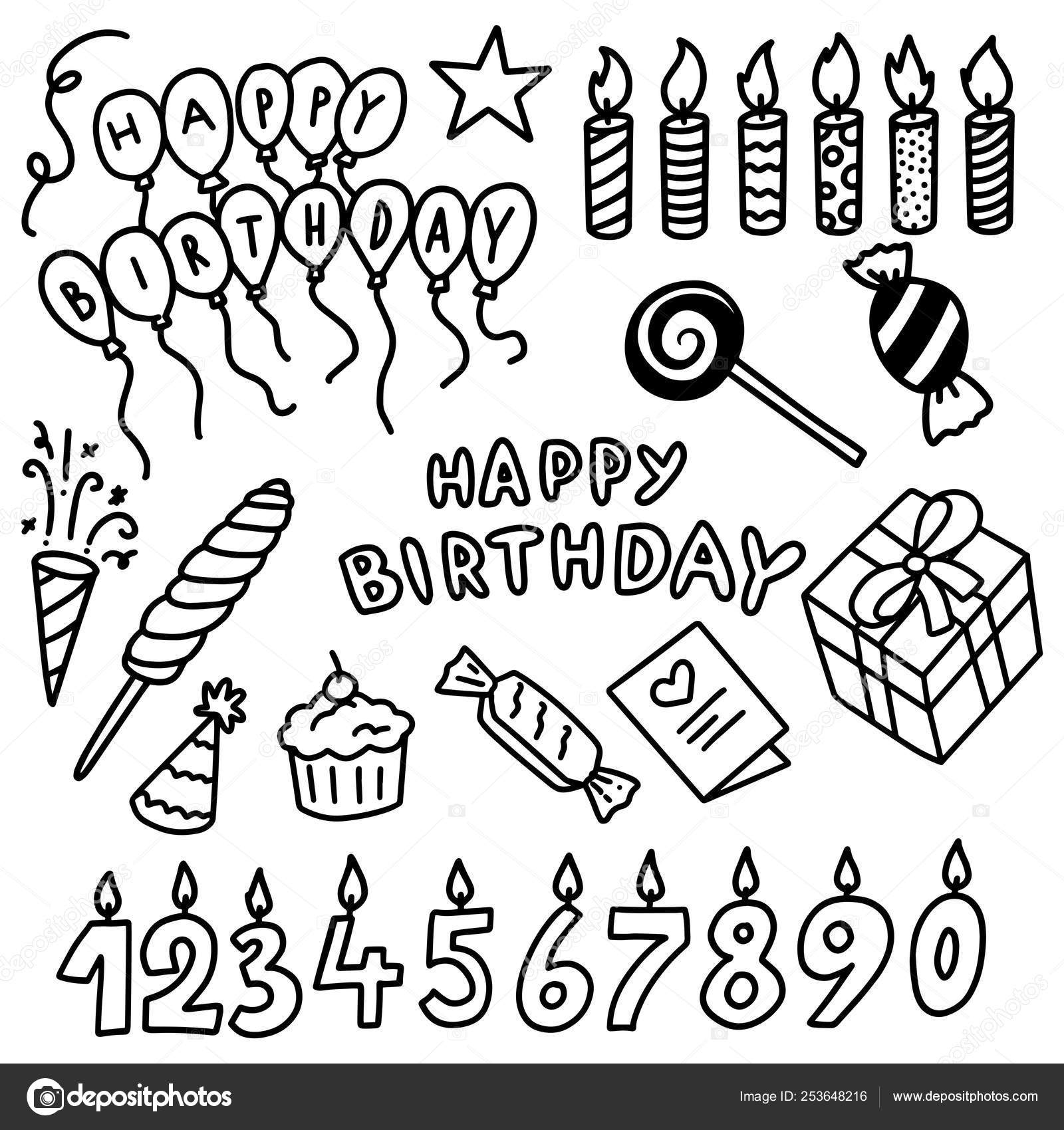 Cute Happy Birthday Doodle Set Party Celebration Doodle Png And Vector With Transparent Background For Free Download