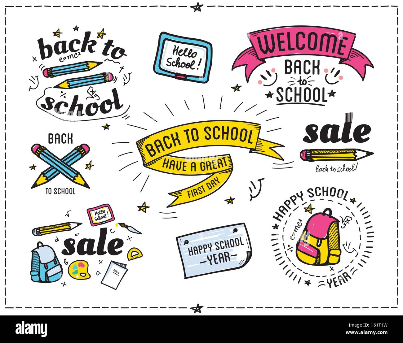 Back To School Quotes Catchword Poster Set Colorful Vector Stickers Stock Vector Image Art Alamy
