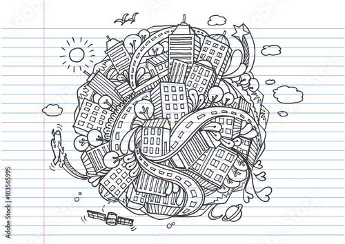 World City Doodles Elements On Lined Notebook Paper Vector Illustration Buy This Stock Vector And Explore Similar Vectors At Adobe Stock Adobe Stock