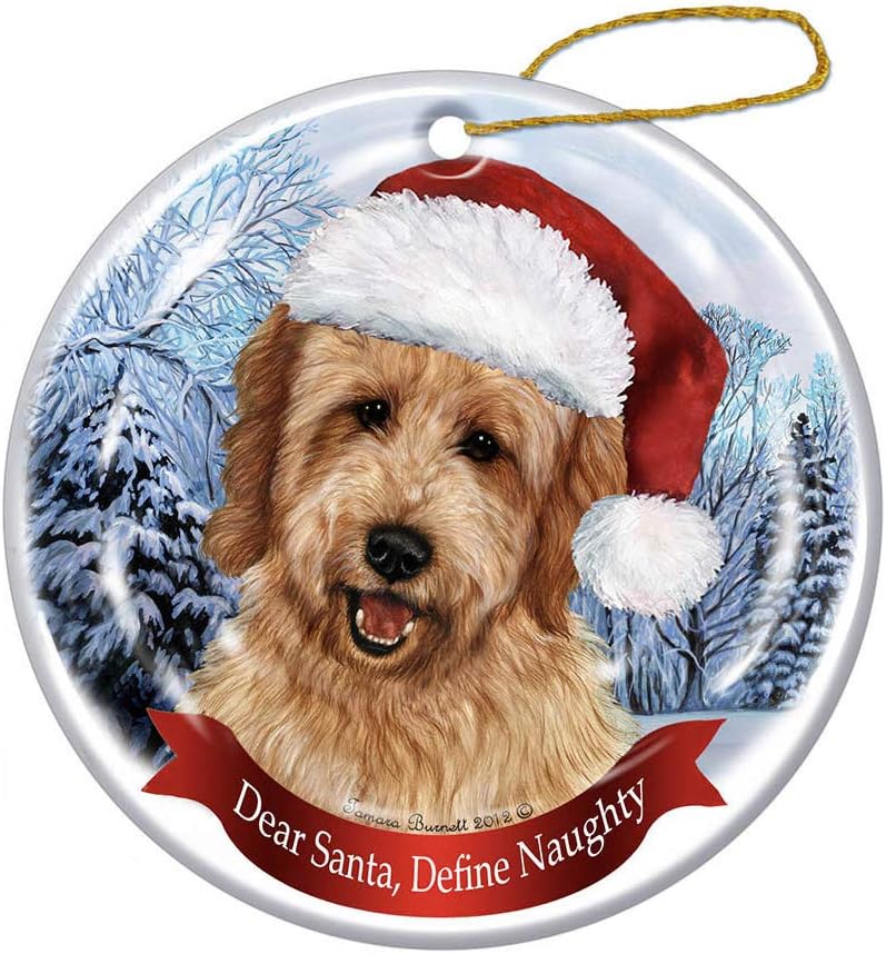 Amazon Com Holiday Pet Gifts Goldendoodle Santa Hat Dog Porcelain Christmas Tree Ornament Home Kitchen