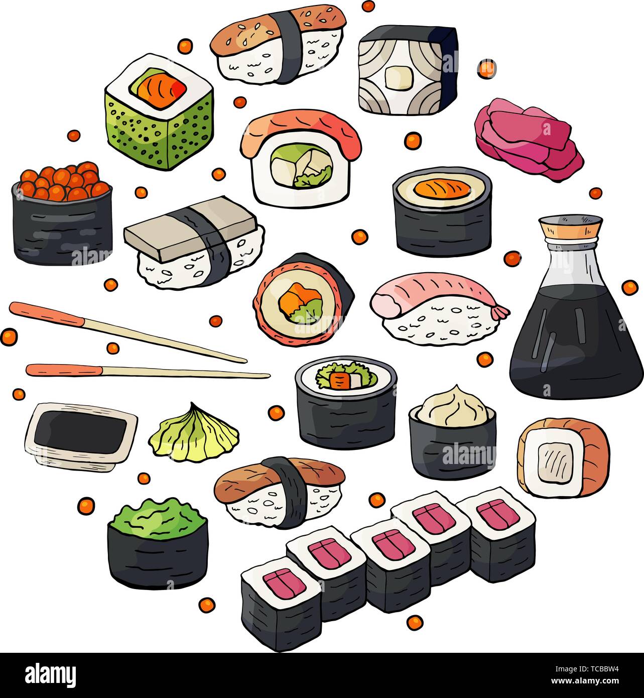 Set Of Japan Sushi Collection Isolated On White Background In Circle Japan Food Stock Vector Image Art Alamy