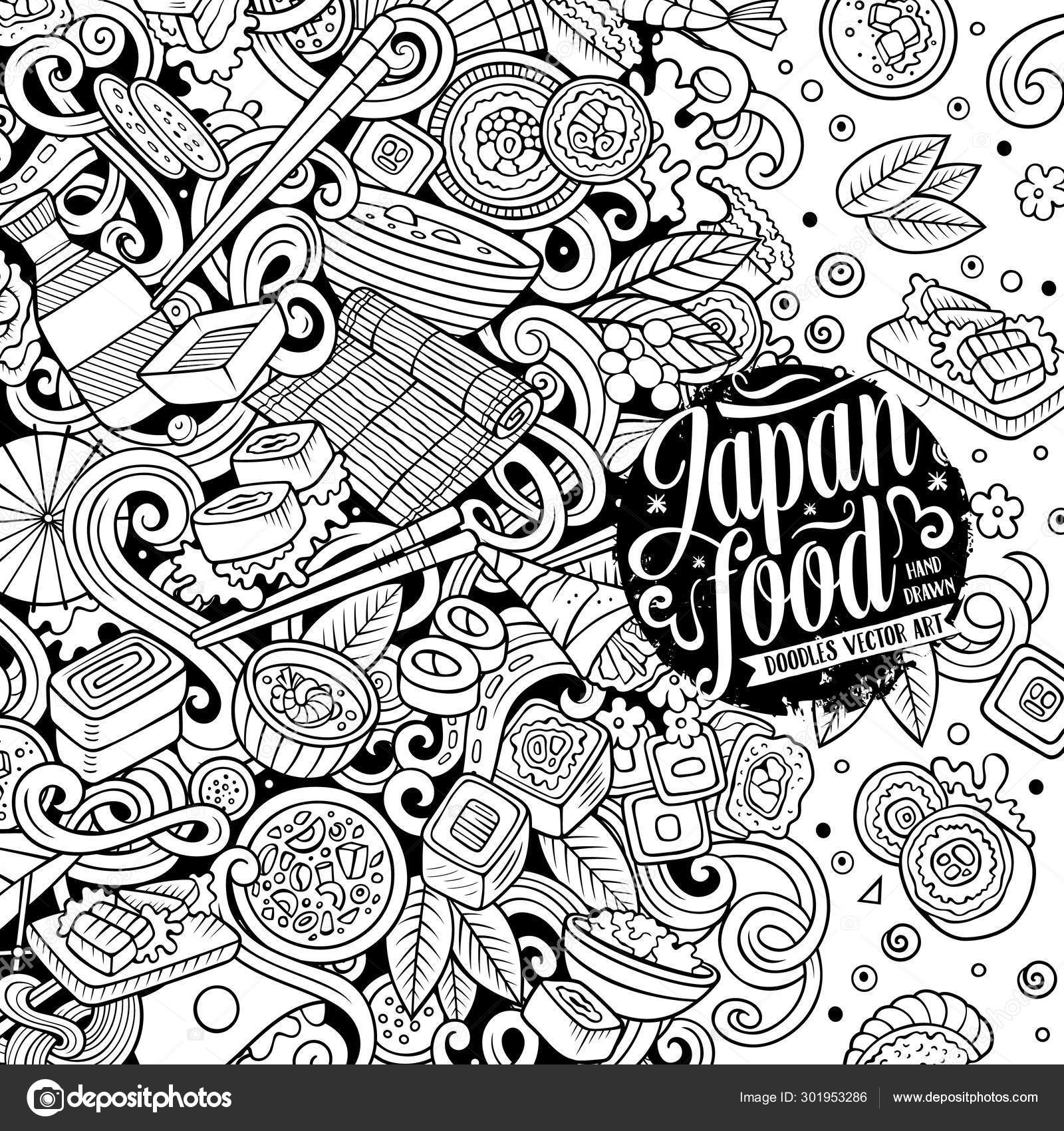 Cartoon Contour Hand Drawn Doodles Japan Food Frame Stock Vector C 3dsparrow 301953286