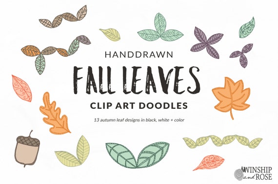 Fall Leaves Leaf Clip Art Doodles For Autumn Etsy
