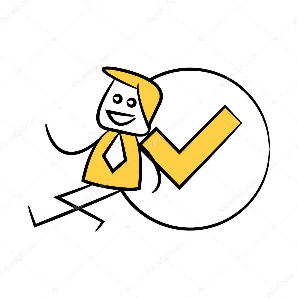 Businessman Sitting Next To Check Mark Yellow Stick Figure Doodle Theme Premium Vector In Adobe Illustrator Ai Ai Format Encapsulated Postscript Eps Eps Format