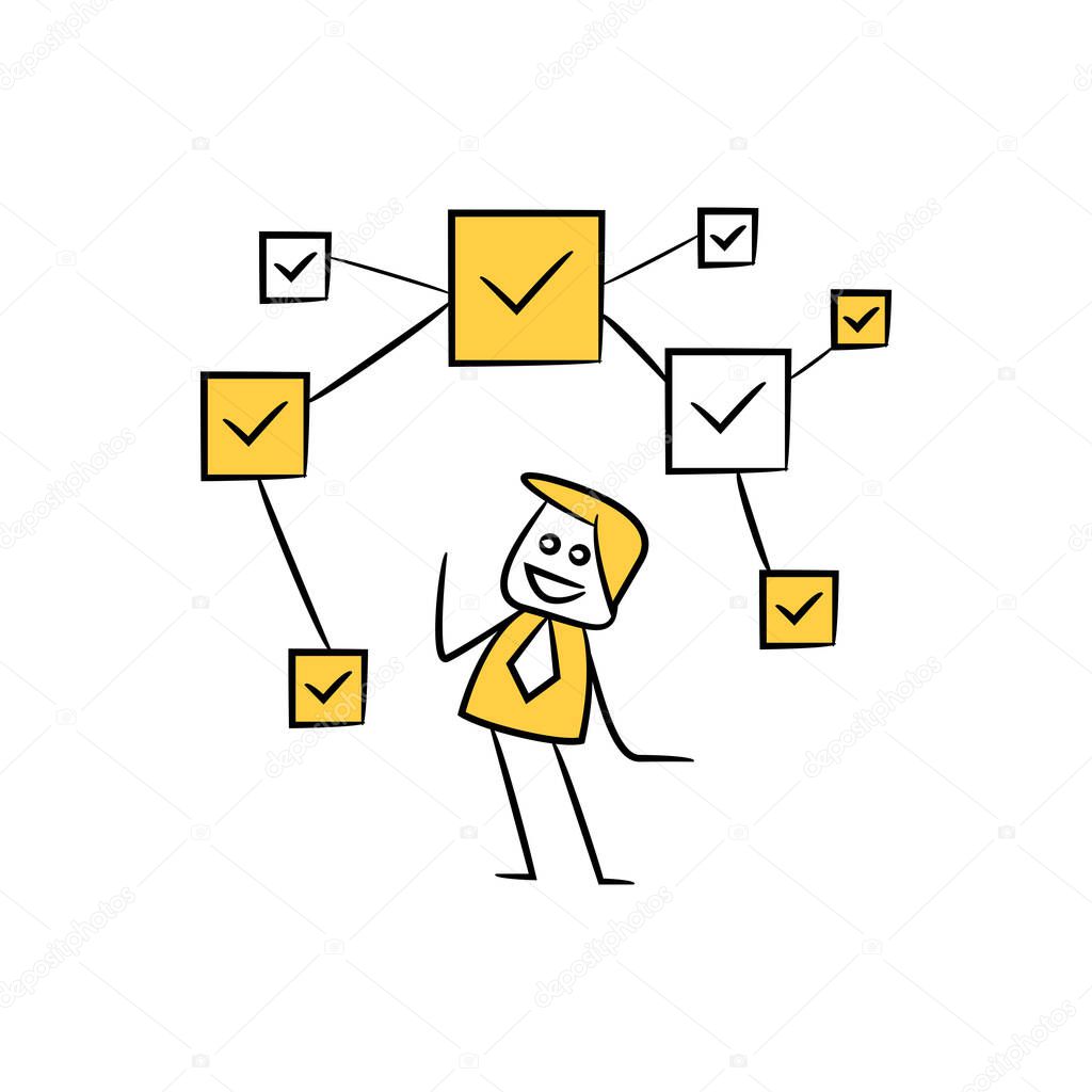Doodle Businessman And Check Mark Network Stick Figure Premium Vector In Adobe Illustrator Ai Ai Format Encapsulated Postscript Eps Eps Format