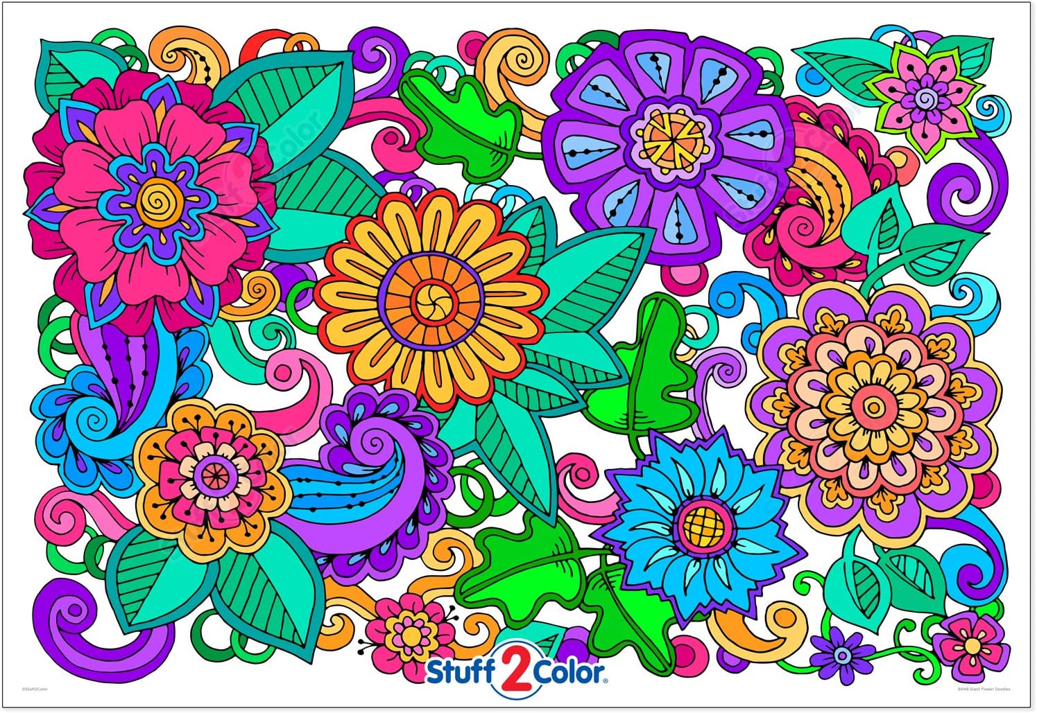 Amazon Com Flower Doodles Giant Wall Size Coloring Poster 32 5 X 22 Great For Family Time Adults Kids Classrooms Care Facilities And Group Activities Includes Reusable Rigid Storage Tube Toys