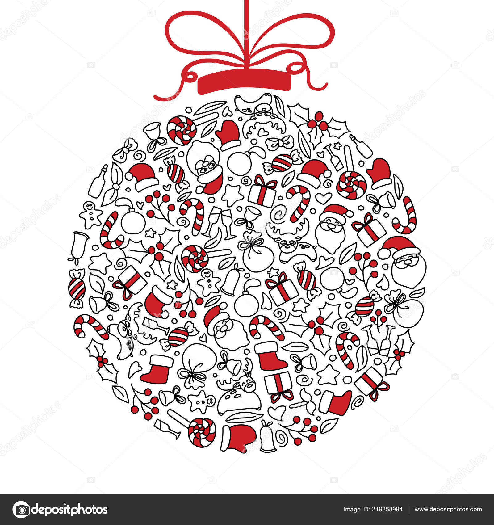 Christmas Doodle Art Ball Shape Illustration Design Element Editable Stroke Stock Vector C Thongsam 219858994
