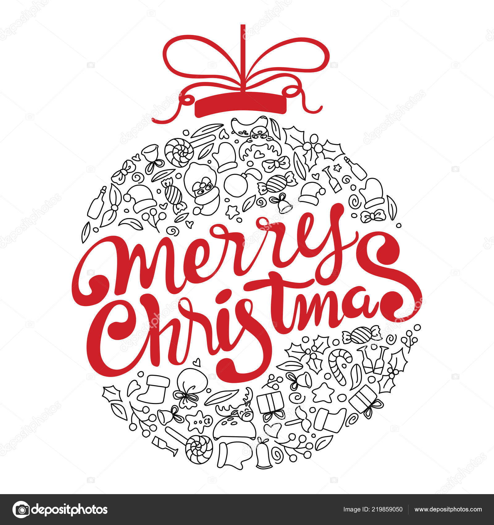 Merry Christmas Handwritten Typography With Doodle Art Ball Shape Royalty Free Cliparts Vectors And Stock Illustration Image 110351765