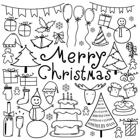Hand Drawn Christmas Doodle Clipart Merry Christmas Clipart Etsy
