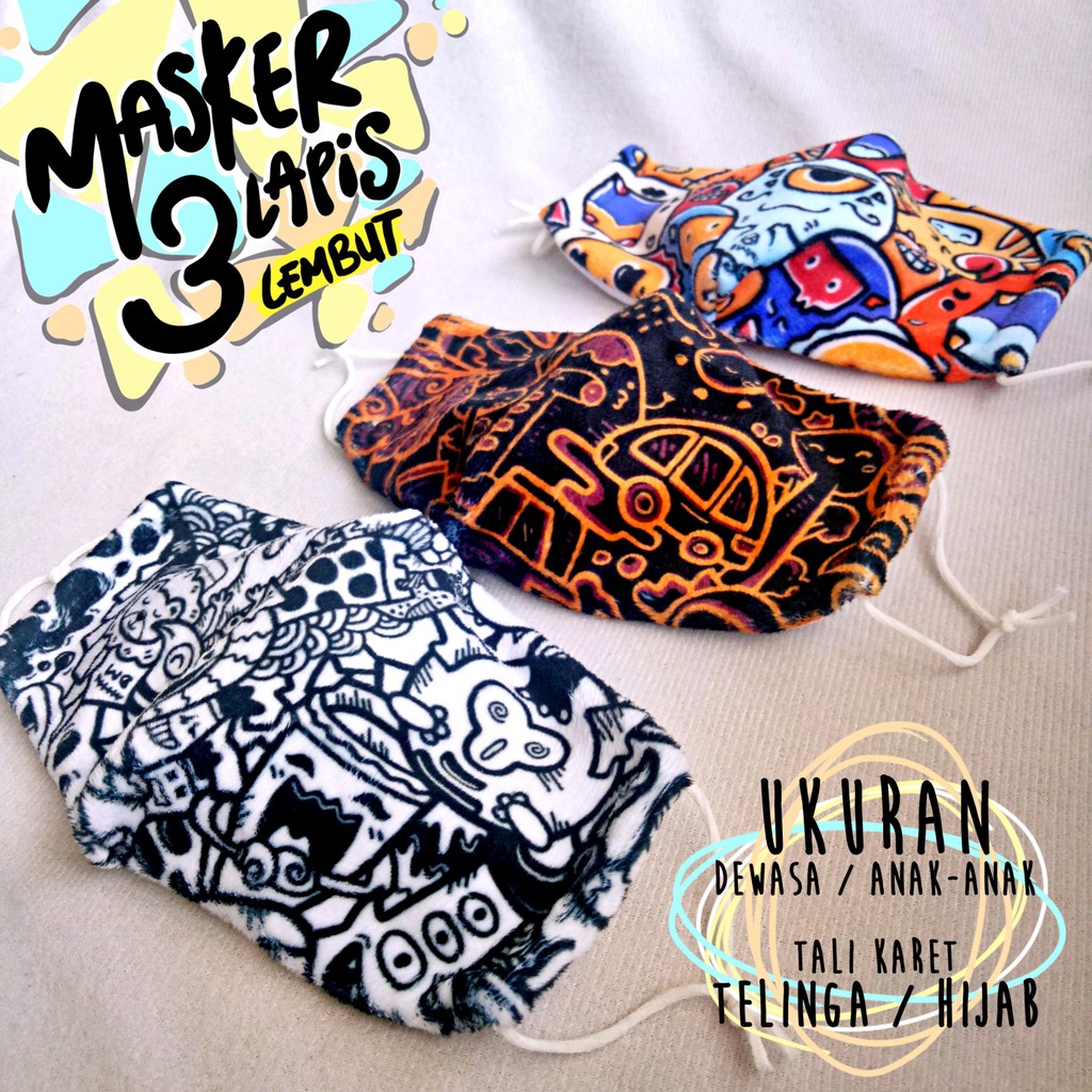 Masker 3 Lapis Doodle Katun Dewasa Anak Tali Karet Hijab Telinga Shopee Indonesia