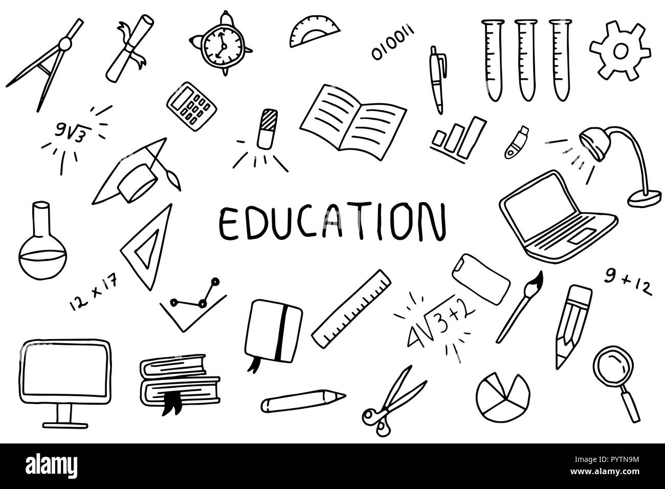 Education Doodle Art With Text Banner On The Middle With Black And White Color Vector Illustration Stock Photo Alamy