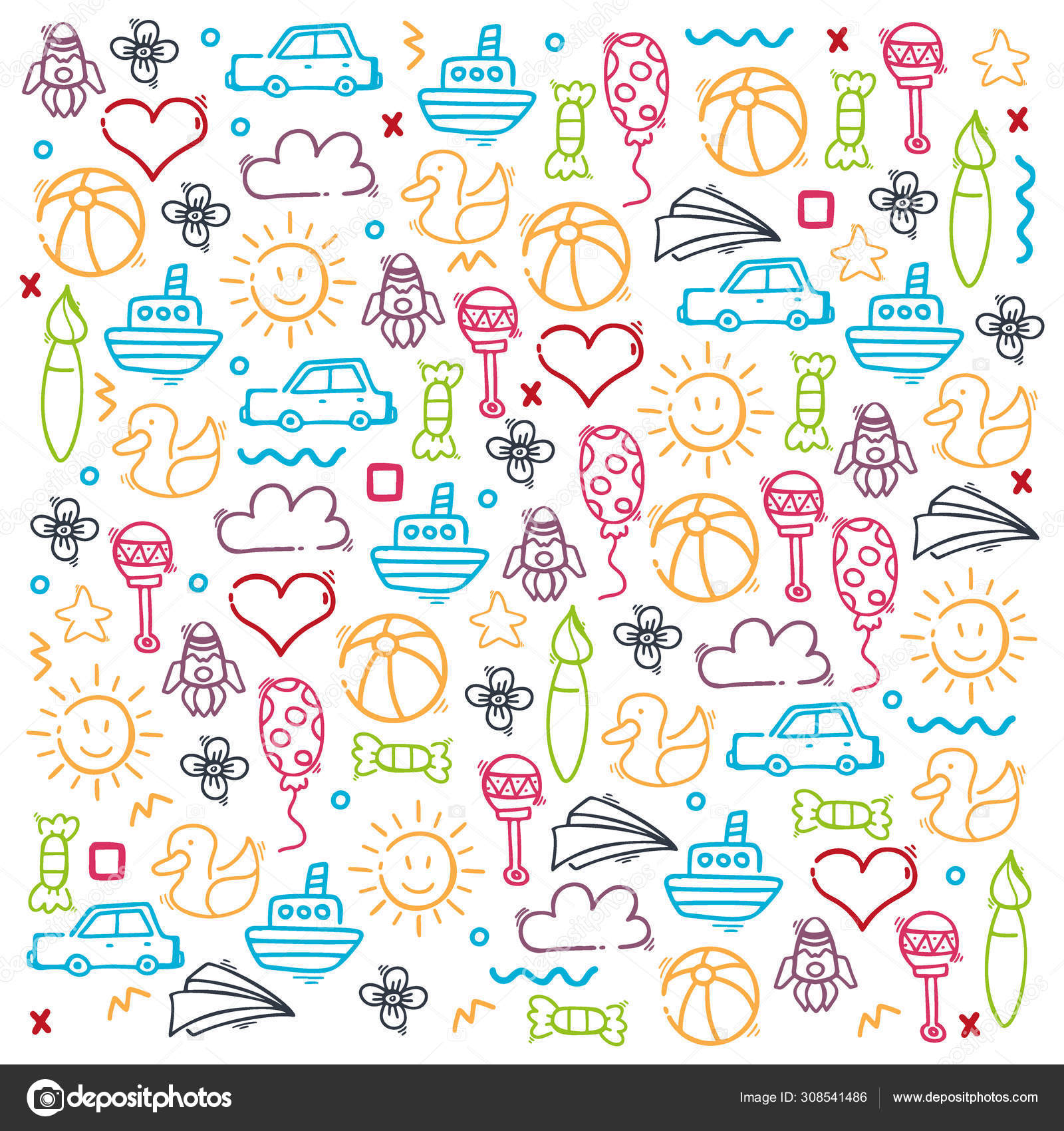 Children Doodle Vector Background With Toys Cute Hand Drawn Royalty Free Cliparts Vectors And Stock Illustration Image 74065195