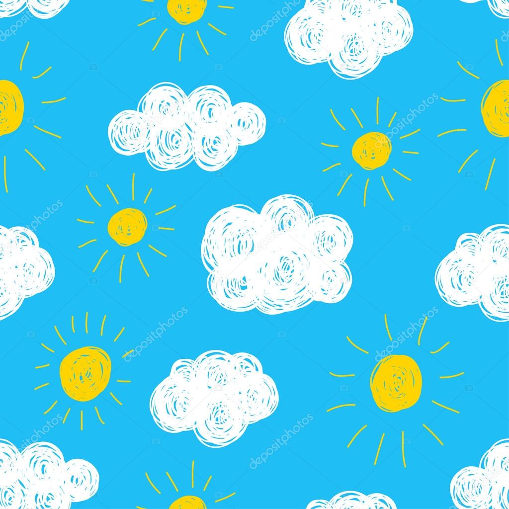 Simple Doodle Seamless Pattern Background With Clouds And Sun Stock Vector C Vanillamilk 98119468
