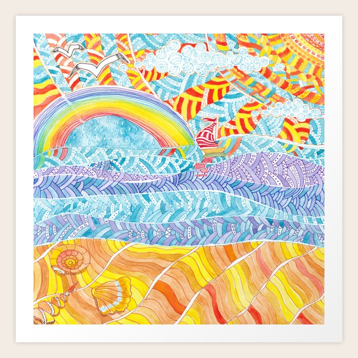 Sea Beach With A Rainbow And Shells Abstract Doodle Colorful Landscape Art Print By Jeshta Society6
