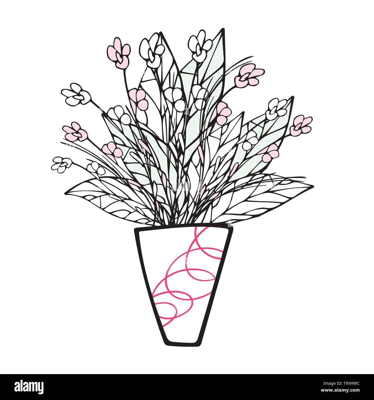 Flowers Vase In Doodle Style Vector Illustration Stock Vector Image Art Alamy