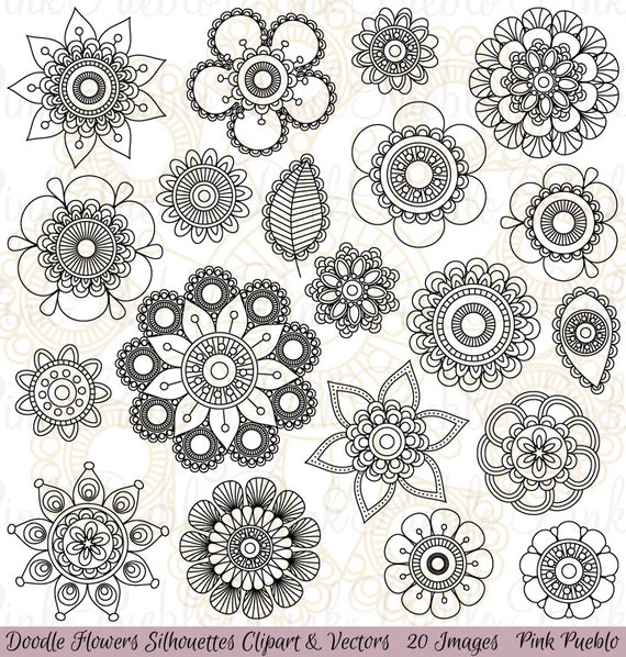 Doodle Flowers Silhouettes Clipart Clip Art Doodle Flowers Etsy
