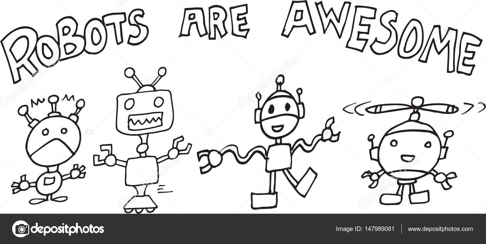 Cute Happy Cartoon Doodle Robot Group Of Robot Drawing Sketch Royalty Free Cliparts Vectors And Stock Illustration Image 115671702